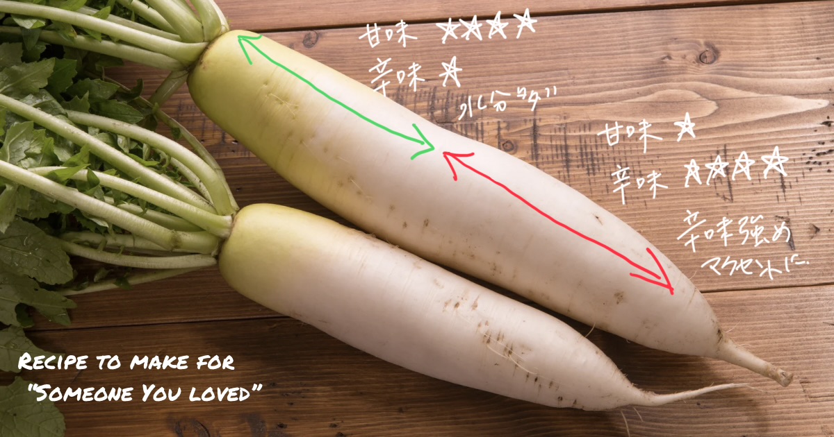 Have you ever seen daikon radish cut in half and sold that way at the store? There’s actually a good reason for it! Depending on which part of the daikon you’re using, the flavor, spiciness, and moisture level can vary quite a bit. Knowing which part to use for which dish can really level up your cooking.