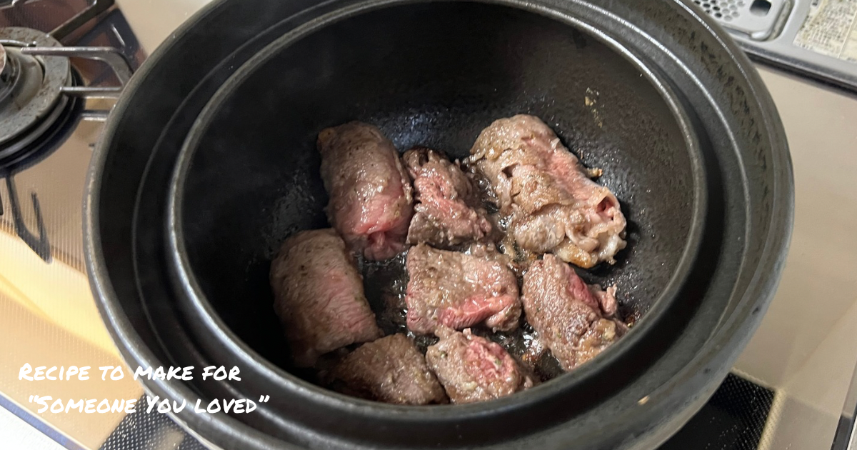 Since I had some leftover red wine from making fig compote, today I decided to use it for a main dish—a Japanese-style beef stew simmered in red wine.