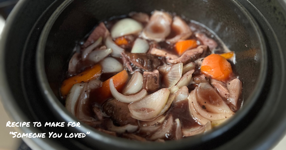 When you think of beef stew, it’s usually made with big chunks of meat. But here’s a little trick: if you roll up thinly sliced beef into small bundles, they look like chunks of meat but cook much faster—and the result is tender, juicy, and so much easier to eat.