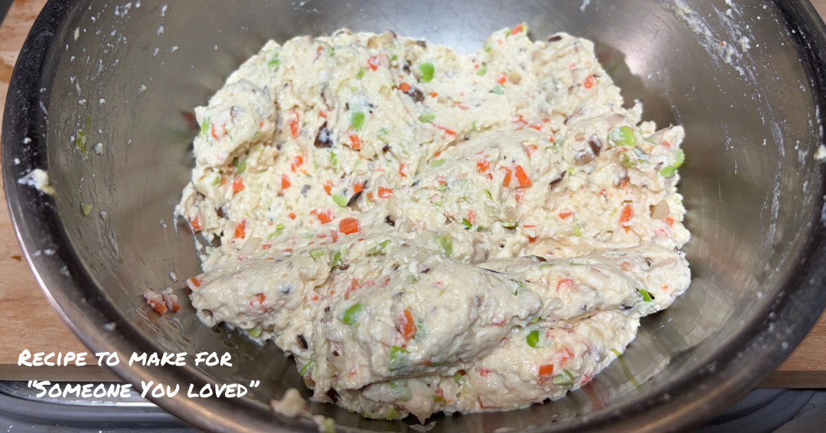 つぶした豆腐にみじん切りにした野菜とすりおろした山芋(長芋)、卵、和風顆粒だし、片栗粉を加えてよく混ぜる。水分が多くてまとめにくければ片栗粉を追加で加える。