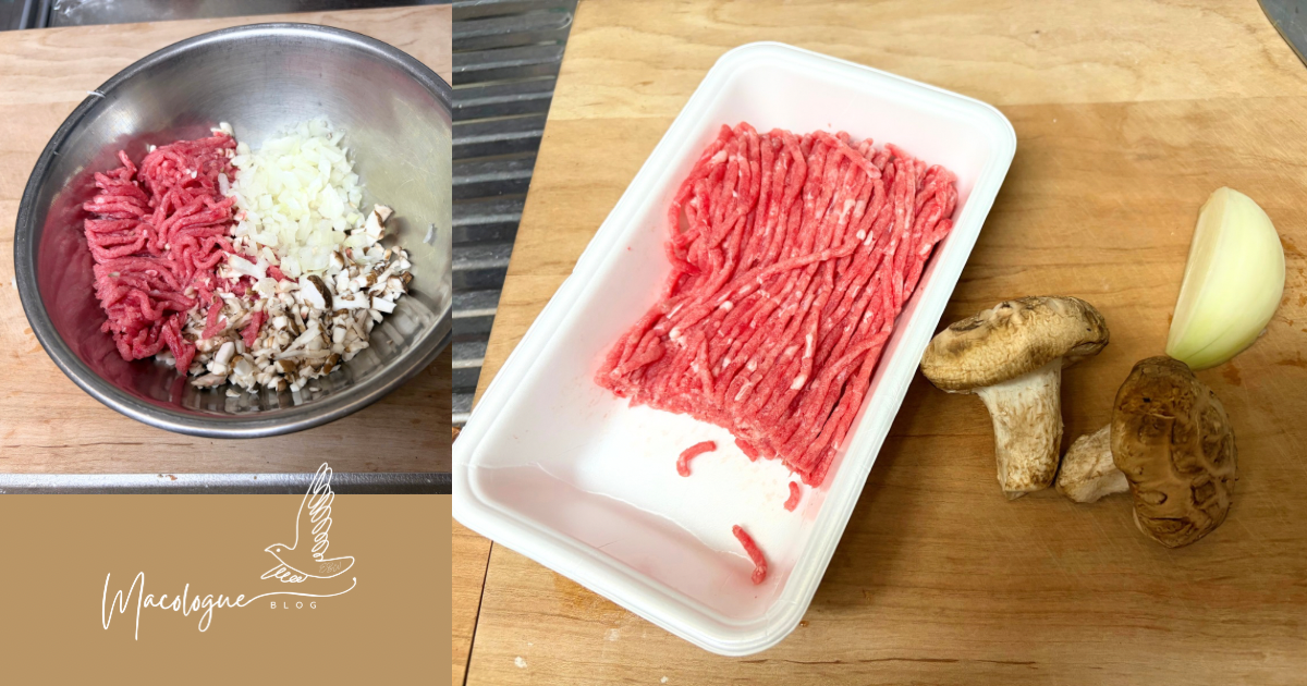 In a bowl, combine the pork, chopped vegetables, and all the seasonings. Mix well until sticky, then refrigerate the mixture — this makes it easier to handle later.