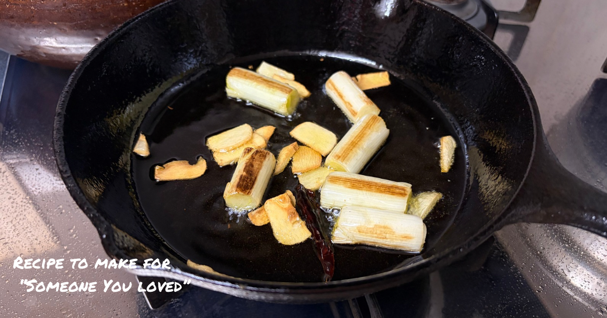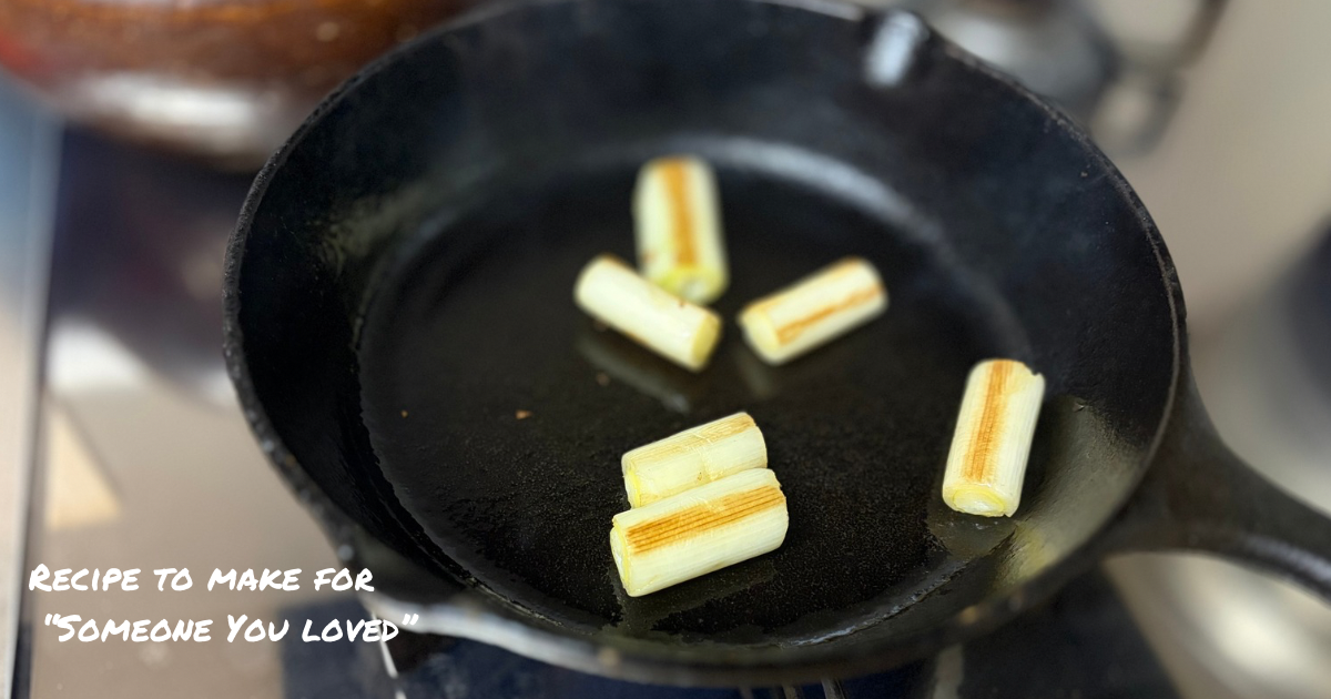 - In a small skillet (around 10cm is ideal), dry sauté the leeks—no oil yet! Let them get a nice bit of char. Once browned, remove and set aside.