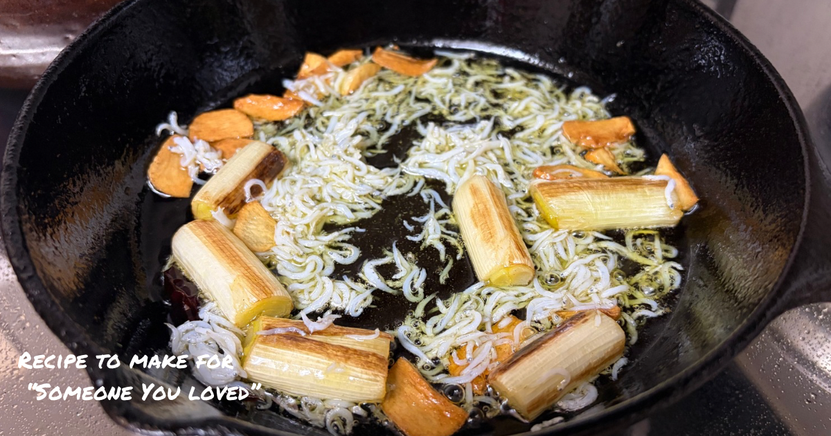Plate it up and enjoy—tender leeks, fluffy shirasu, and crispy garlic come together for a dish that’s simple but packed with flavor and texture.