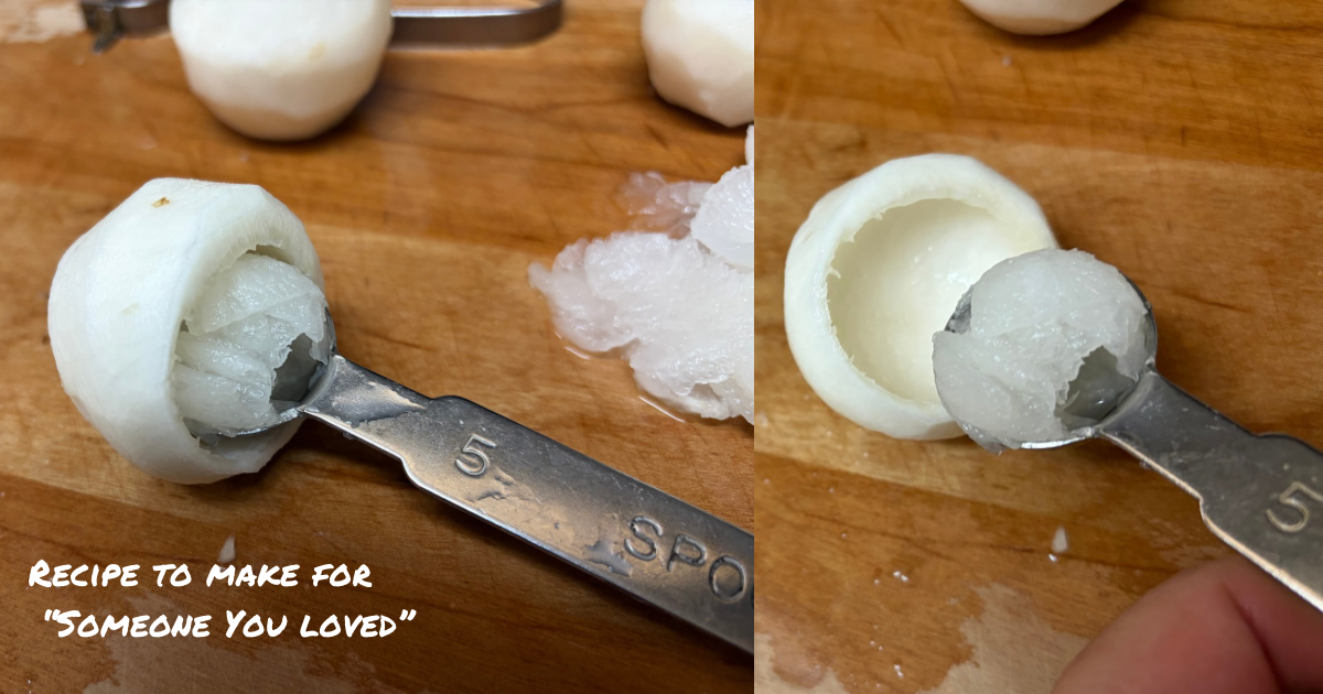 Combine the ground chicken, seasonings, potato starch, and the chopped turnip centers. Mix well.